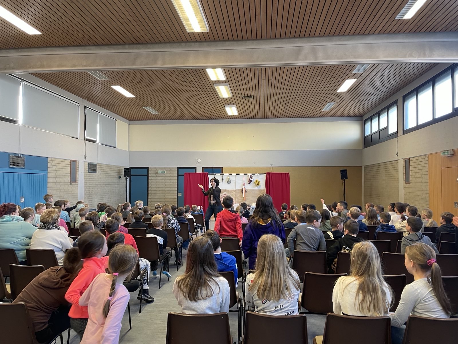 Im April besuchte uns das Kindertheater "Coq au vin" an der Kolibri-Schule. Die beiden Theaterkünstler spielten das Stück "Der furiose Küchenzirkus" und begeisterten damit die großen und kleinen Zuschauer. Es ging lustig und rasant zu. Das Highlight am Ende war der Akrobatikteil, der von den Zuschauern mit viel Applaus bedacht wurde.