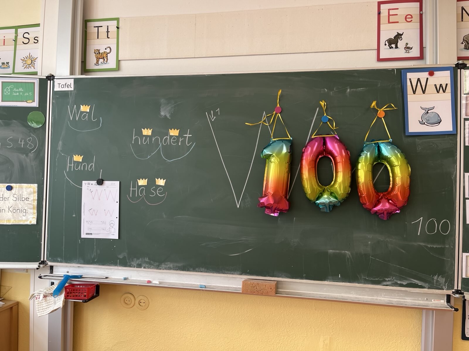 Die Erstklässler waren 100 Tage in der Schule und so drehte sich alles um die "100" an diesem besonderen Tag.