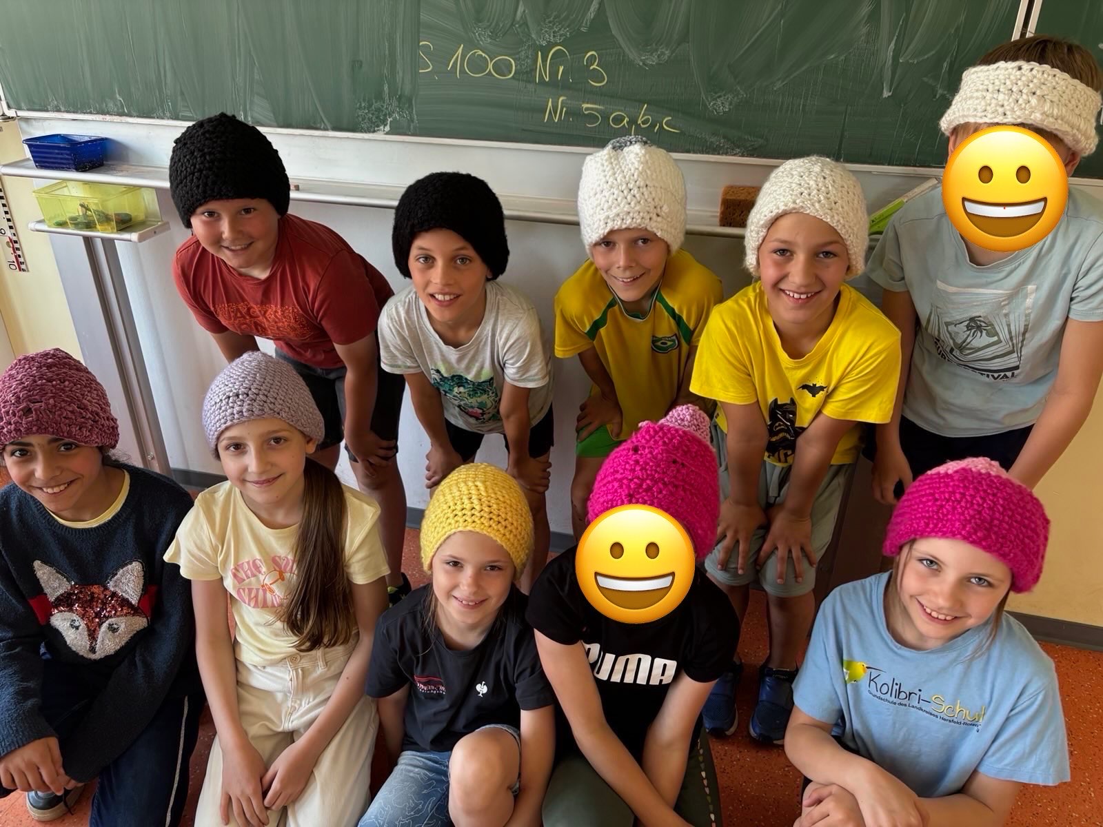 Die Klasse 3b hat fleißig Mützen gehäkelt …