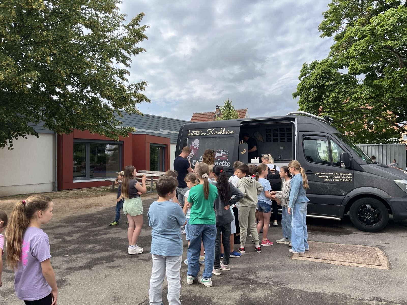 Vielen Dank an den Förderverein, der die Kosten und die Organisation für diese eisige Überraschung übernahm! Der Eiswagen kam an die Kolibri-Schule und alle Kinder durften am vorletzten Schultag ein leckeres Eis genießen. So war die Hitze doch gleich viel erträglicher!