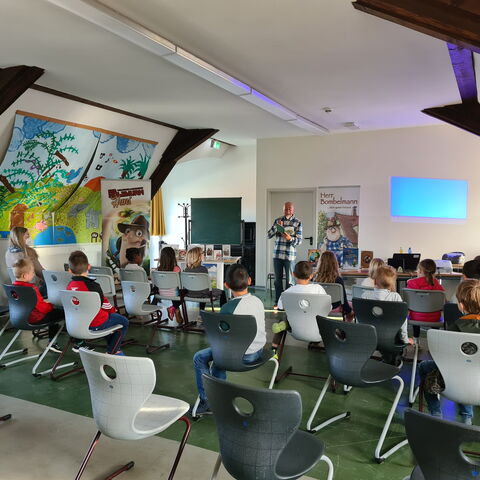 In diesem Jahr besuchte uns der Autor Thomas J. Hauck, um aus seinen Kinderbüchern vorzulesen. Er hatte für die verschiedenen Klassenstufen unterschiedliche Werke herausgesucht, aus denen Herr Hauck vorlas, während die Kolibris aufmerksam zuhörten.