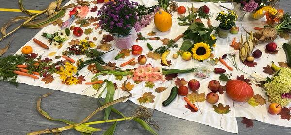 Am 30. September feierten wir mit alle Kindern der Schule das Erntedankfest. Wir bauten in der ersten Stunde auf. Danach kamen die anderen Klassen mit ihren Lehrerinnen. Die 4a begrüßte. Wir sangen das Lied „Danke für diesen guten Morgen“. Dann legten wir das Obst und Gemüse, die Blumen und Blätter auf ein weißes Tuch. Herr Leinweber redete noch ein wenig über die Ernte. Später führten wir eine Geschichte über eine Ameise und ein Weizenkorn auf. Darin ging es darum, dass ein Weitenkorn von der Ernte übriggeblieben war. Eine Ameise wollte es in den Bau bringen als Vorrat für den Winter. Doch dann grub sie es ein. Nach einem Jahr kam sie wieder und dann stand da eine Weizenpflanze. Nach der Geschichte sang uns die 4a ein Lied vor. Herr Leinweber betete mit uns. Dann nahmen alle ihre mitgebrachten Sachen wieder mit und wir bauten ab.