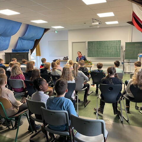 In diesem Jahr besuchte uns der Autor Thomas J. Hauck, um aus seinen Kinderbüchern vorzulesen. Er hatte für die verschiedenen Klassenstufen unterschiedliche Werke herausgesucht, aus denen Herr Hauck vorlas, während die Kolibris aufmerksam zuhörten.
